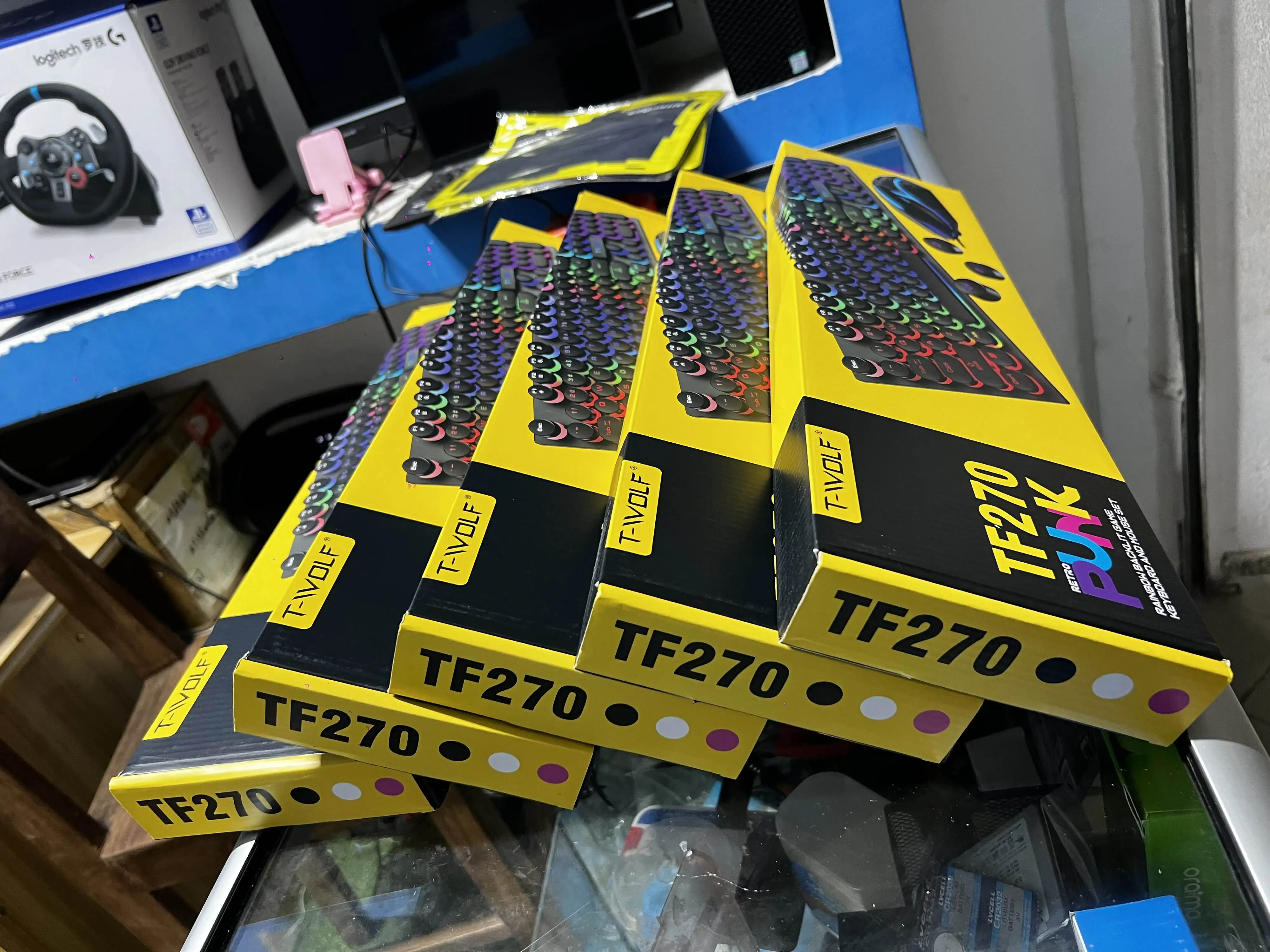 แป้นพิมพ์เล่นเกม TF810 T-WOLF ชุดเล่นเกม USB มีสี104ปุ่ม LED เมาส์แบ็คไลท์ LED ชุดหูฟังคอมโบ